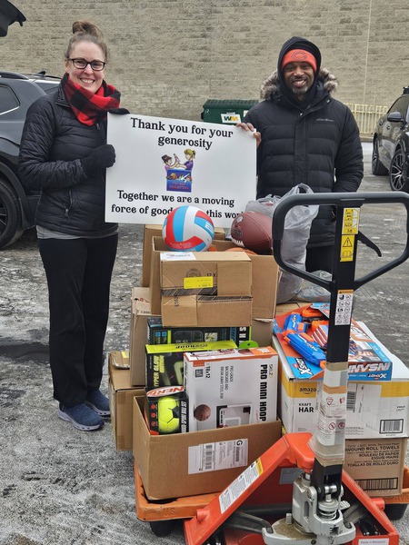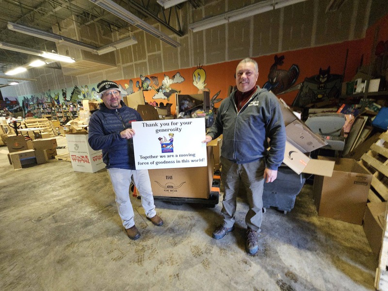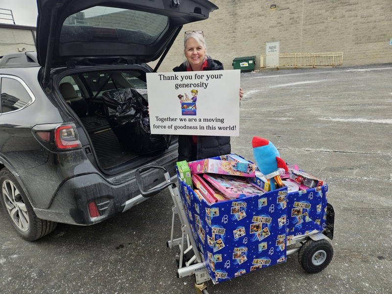 The largest item was a backyard playhouse. Other donations included bicycles, big wheels, books, board games and a whole bunch of brand new toys from a toy store that had been slightly scratched or dented.
