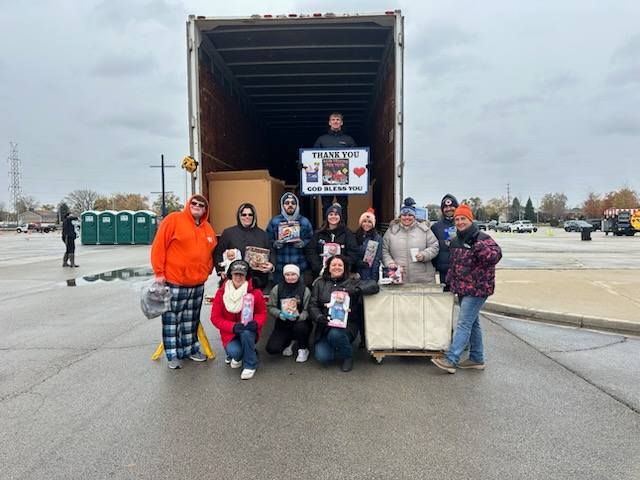 “Everything Tim needed for the day was donated,” said Bill Corbett, pleased that his son’s idea had been so well received by the community. The semi-truck came from 3MD Re-location Services, Safety Town provided its parking lot for drop off event and 3MD bought lunch, he added.